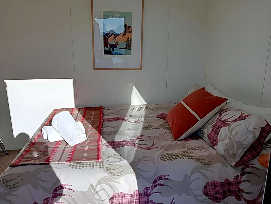 This family room has access to shared bathroom and kitchen facilities, no cutlery in the cabins.
