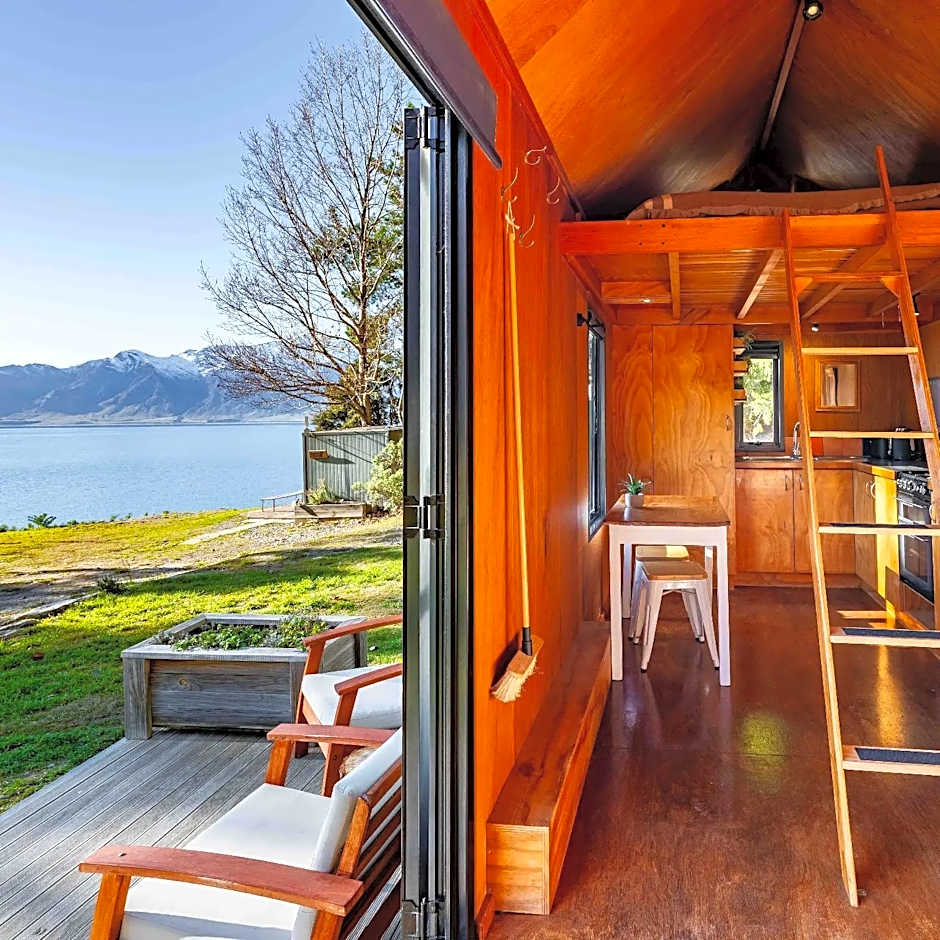 Featuring views of the lake, this solar powered room has a kitchen and log burner.